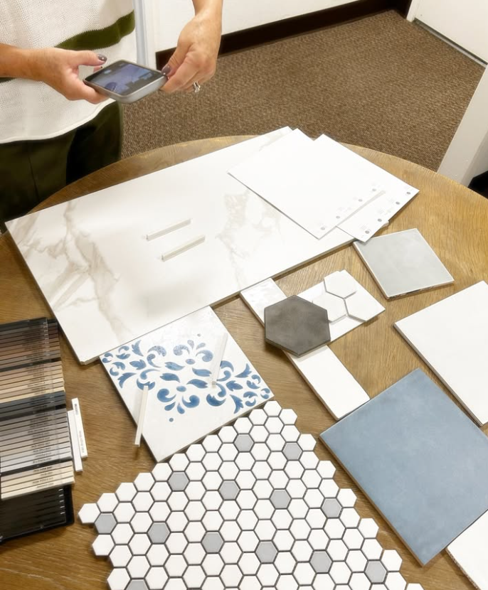 Getting very excited over here as the tile work progresses and millwork begins on the Huntington Beach project! Visit our post on IG to see tile selections in several baths as well as paint and other details. Things are moving along! @interiordesign #tile #newbuild